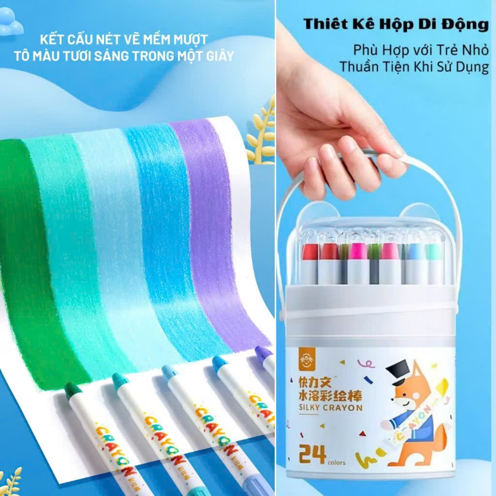 🌼🌼Bút màu dạng sáp vặn mang lại sự tiện dụng cho người vẽ vì không cần gọt, không cần pha màu như khi sử dụng bút chì hoặc màu nước, đầu vặn nhẹ dễ dàng cho bé. Ruột sáp mềm, ít gãy vụn, ít tạo màu thừa, dễ dàng rửa sạch khi dính lên tay hay quần áo.