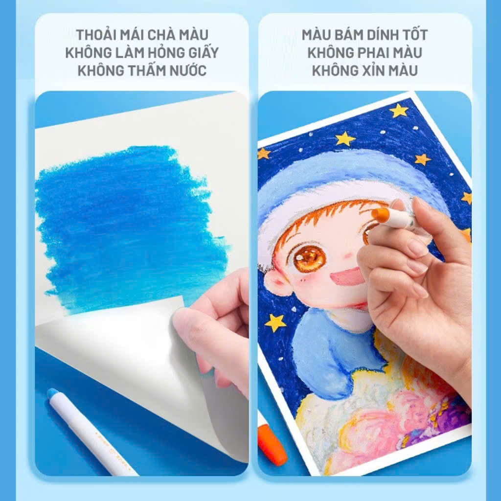 ✨️✨️Bút sáp vặn được làm từ nguyên liệu cao cấp, cho màu sắc chuẩn, tự nhiên, tươi sáng như thật, có độ bám giấy và độ phủ màu tốt. Khi tô vẽ lên mặt giấy, màu đều, mịn và bóng.