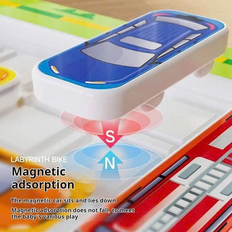 Điều khiển xe bằng nam châm: Sử dụng thanh nam châm đi kèm để dẫn đường cho xe ô tô di chuyển qua các đoạn đường.