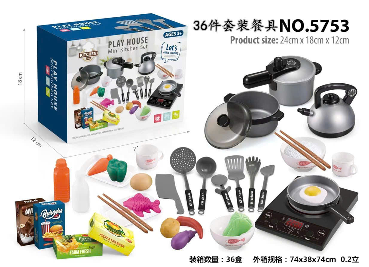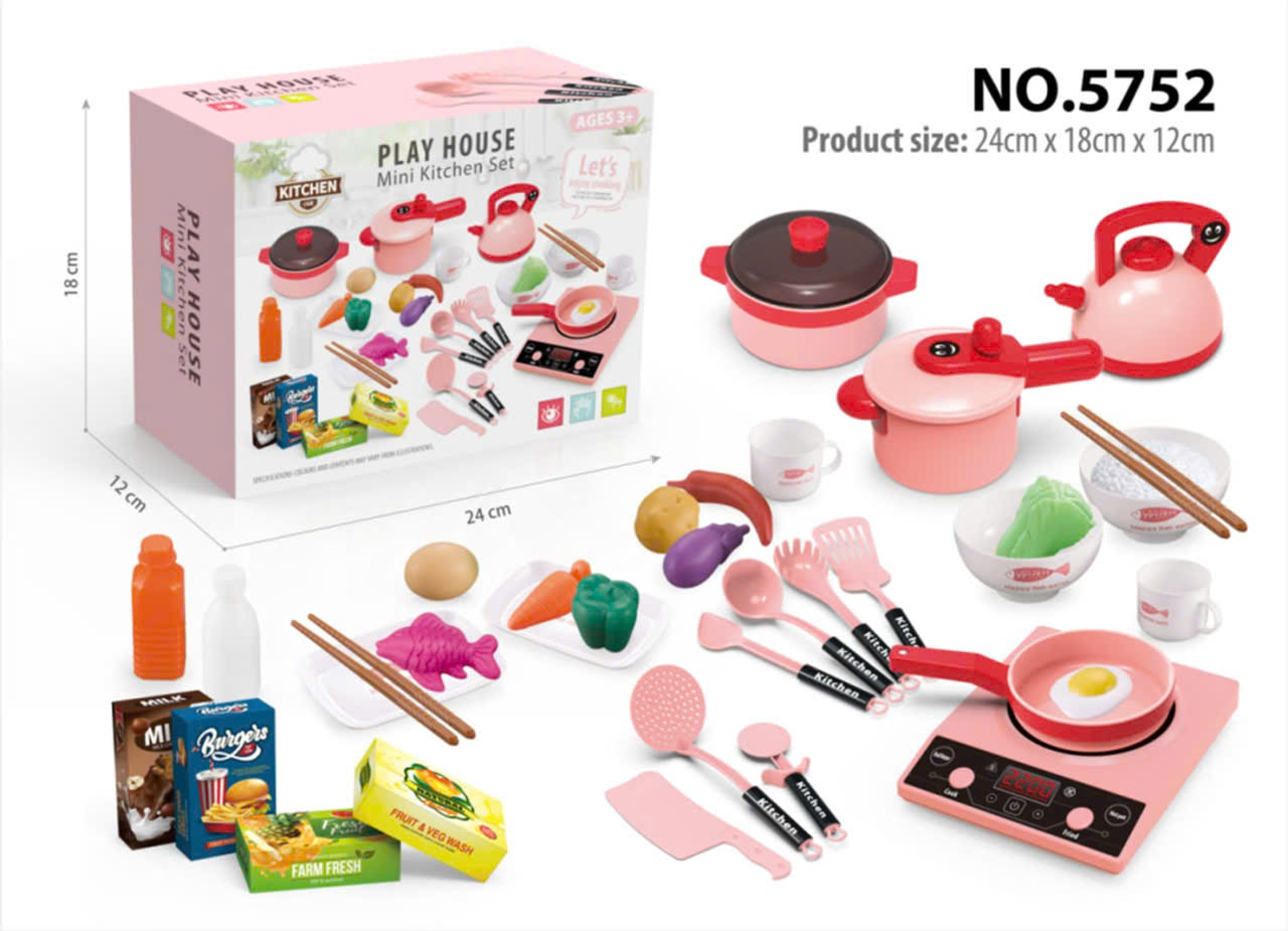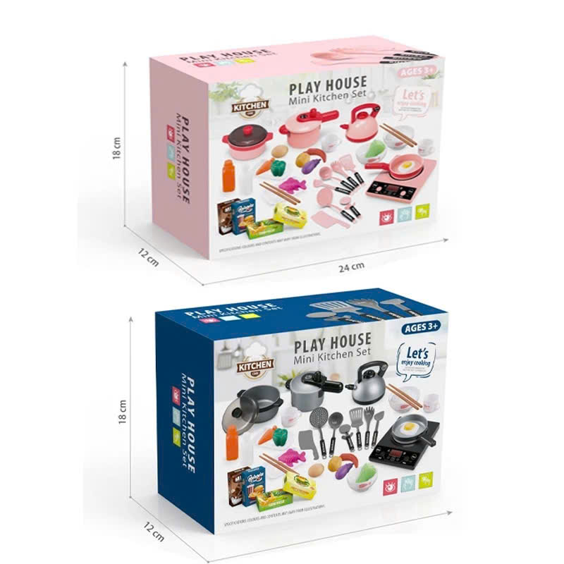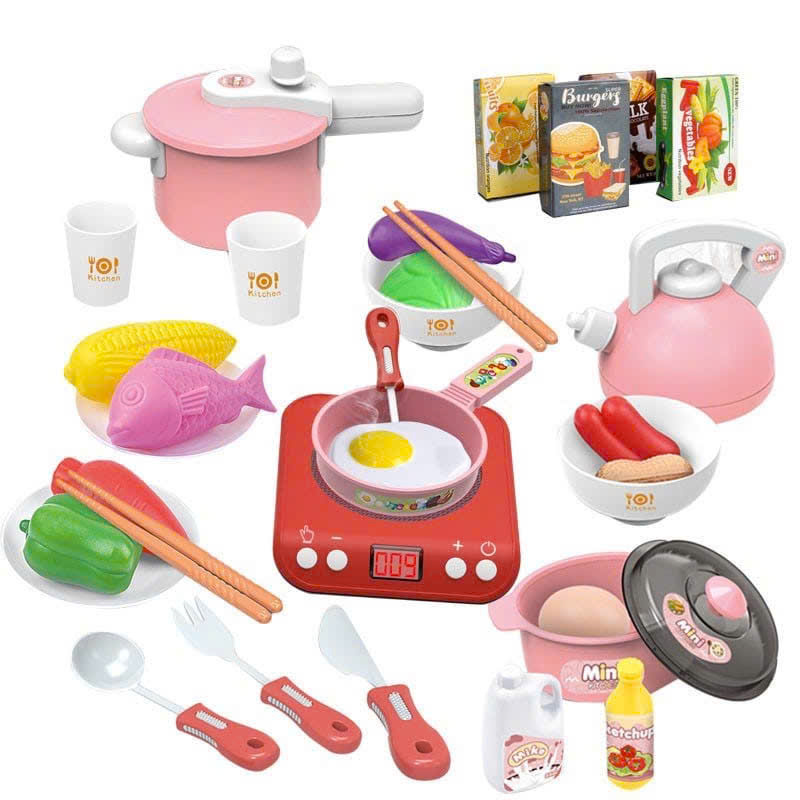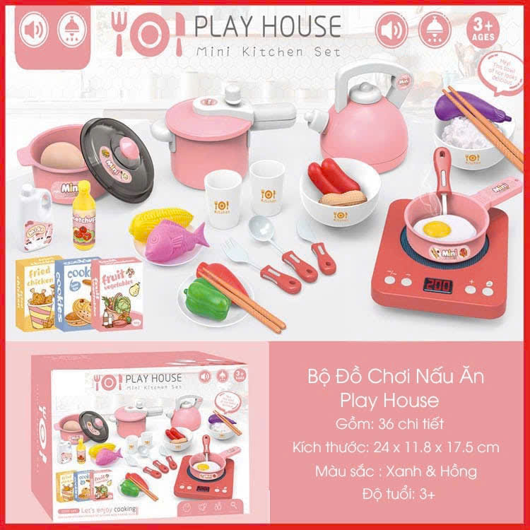 Bộ sản phẩm có đầy đủ các dụng cụ cần thiết trong bếp như bếp, nồi, xoong, chảo,… đến các món ăn thường gặp hàng ngày như khoai, ngô, trứng, xúc xích,… Tất cả đều được làm từ nhựa rất an toàn, các góc cạnh bo tròn, không sắc nhọn cha mẹ hoàn toàn có thể yên tâm khi cho bé vui chơi