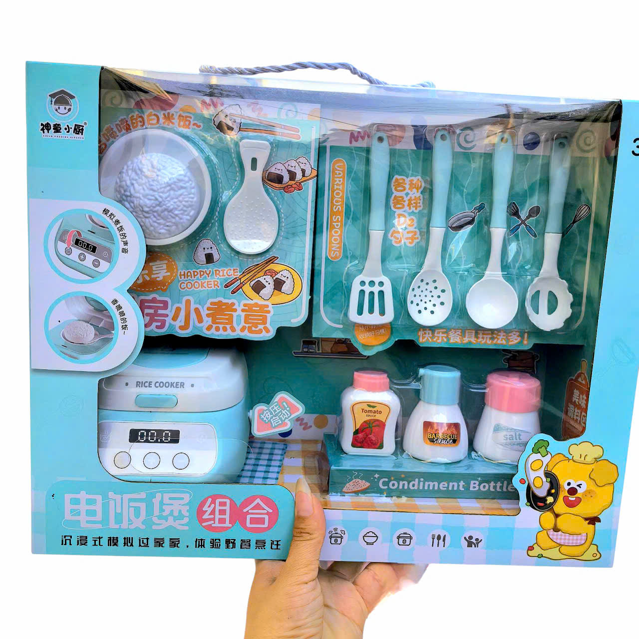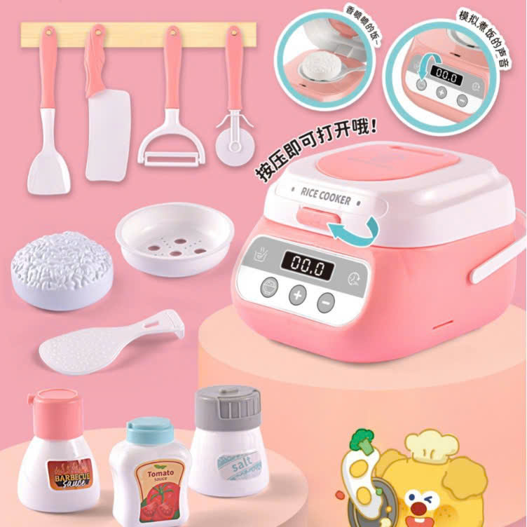 🥖🥖Mô phỏng theo nồi cơm điện có hiện ứng âm thanh, giúp bé làm quen với những đồ dùng gia vị nhà bếp và cách nấu cơm.