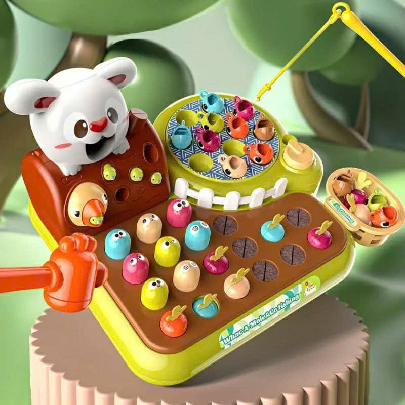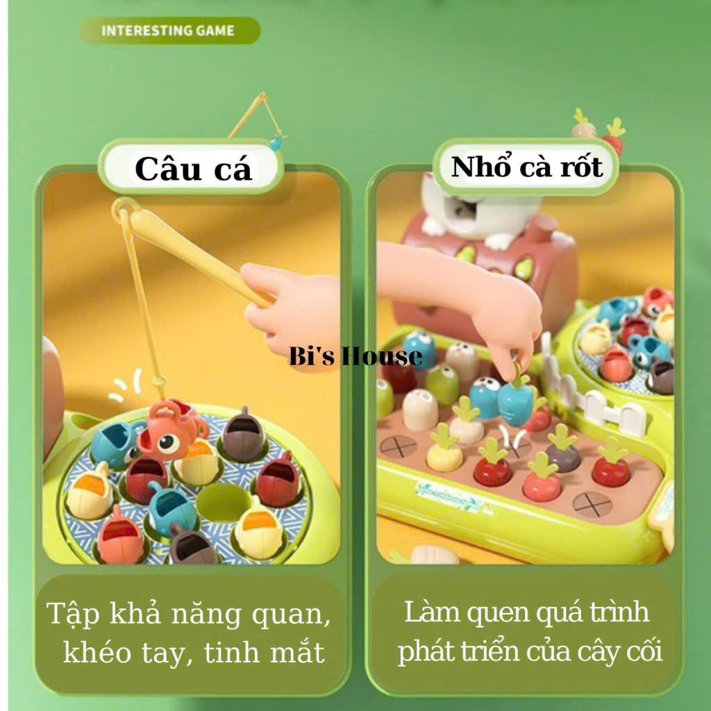 🌿 Set bao gồm bàn chơi 4 in 1, cần câu & rổ đựng cá, 12 chú cá, 11 củ cà rốt, 8 chú chuột hamster