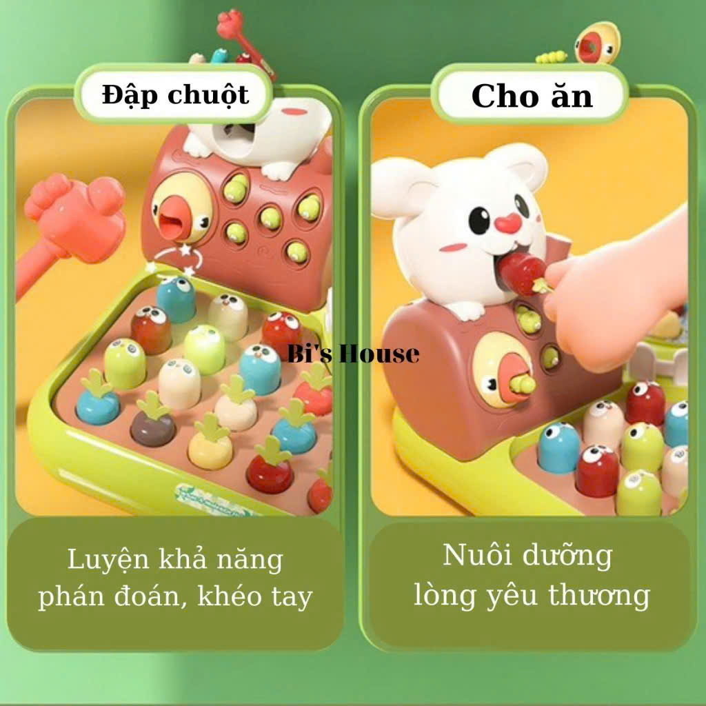 ✔️ Trò chơi đập chuột: Luyện phối hợp tay mắt và quan sát, phản xạ nhanh với trò chơi đập chuột gay cấn. Có âm thanh “vỗ tay” khích lệ và âm thanh “thất bại” để bé chơi thêm sinh động. Nếu bé chơi trúng 30 lần sẽ chiến thắng, gõ sai hoặc hụt 10 lần là thất bại nha.
