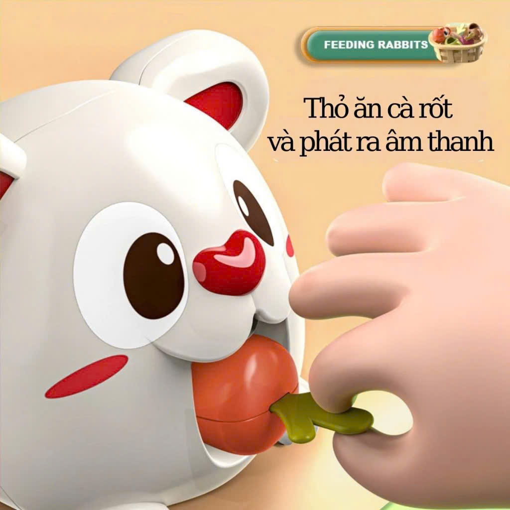 ✔️ Trò chơi cho thỏ ăn cà rốt: Sau khi thu hoạch, bé có thể cho bạn thỏ ăn những quả cà rốt ngon lành, mỗi lần thỏ ăn sẽ có hiệu ứng âm thanh vui nhộn nha (có 4 âm thanh tất cả nè)