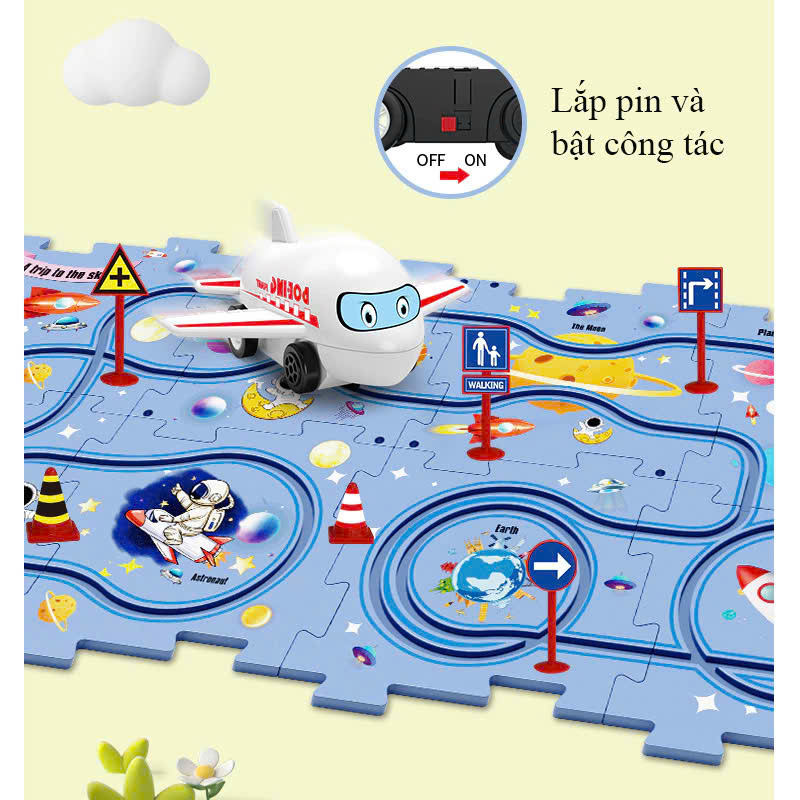 🌼🌼Có khả năng kết hợp nhiều bộ khác nhau tạo nên các mẫu mô hình đường đua to hơn, dài hơn. Xe chạy bằng pin nên an toàn. Bố mẹ có thể mua 4 bộ bản đồ ghép thành 1 cho bé chơi nhé
