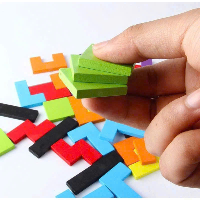 🌼🌼Xếp hình Tetris là trò chơi trí tuệ quen thuộc của tuổi thơ trong trò chơi điện tử tay cầm nhưng được thiết kế lại lên chất liệu gỗ cao cấp an toàn cho bé nhưng cũng vẫn giữ được sự cuốn hút với các bé. Ghép gỗ các hình dạng khác nhau như hình vuông, thanh dài, chữ z, chữ T… bé sẽ phải xếp hình vào bảng sao cho lấp đầy bảng mà không còn chỗ trống. Có hàng triệu cách khác nhau để lấp đầy bảng chính vì vậy sẽ giúp các bé hình thành tư duy logic sắp xếp khi chơi.